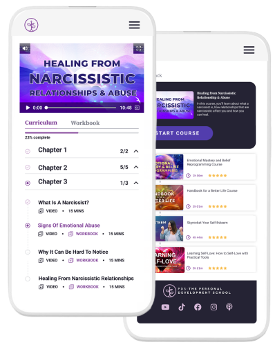 Start your 7-Day Free Trial at no charge today. You’ll unlock lifetime access to the Healing From Narcissistic Relationships and Abuse Course immediately. If you choose to continue after your trial, you’ll receive full access to the entire Personal Development School library, including group coaching sessions and community events, for $67/month. Cancel anytime before day 7 and you won’t be charged anything.
